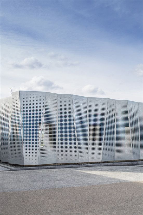 穿孔鋁板作為建筑外部表現(xiàn)的主體,不同板型、構(gòu)造方式的穿孔鋁板整體性效果不同。建筑物作為一個(gè)完整、有力的形象矗立于自然環(huán)境中,有豐富形狀的穿孔鋁板表皮覆蓋建筑的立面,光線經(jīng)過(guò)建筑表皮的過(guò)濾,進(jìn)入建筑內(nèi)部的光線變得非常柔和,給室內(nèi)創(chuàng)造出非常好的光環(huán)境。